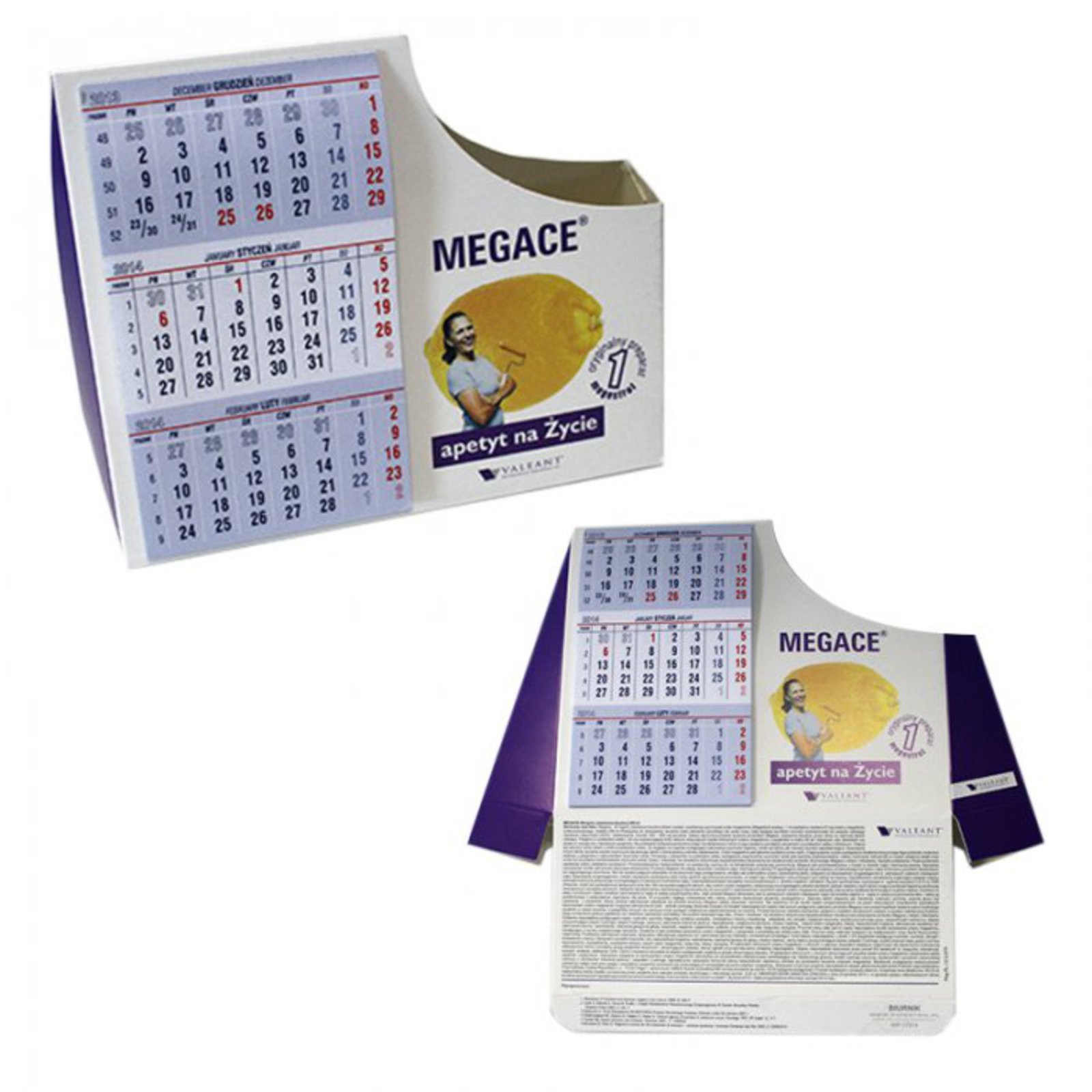 Nástěnné a stolní kalndáře jsou oblíbeným propagačním předmětem. Ruku na srdce - kolik standardních kalendářů Váš klient na konci roku asi tak dostane? Který z nich bude viset u něj v kanceláři, či kralovat na jeho stole? Bezpochyby ten jiný. Nápad je to, co Vás odliší, nápad je to proč Vaši prezentaci příjemce nevyhodí, nápad je to, proč si Vás zapamatují. I kalendář může mít přidanou hodnotu a nápad: přiložené CD či FlashDisk s firemní prezentací, stírací data (podobně jako stírací losy), může zárověň sloužit jako stolní stojánek na tužky a jiné kancelářské potřeby, kalendář může mít atypický tvar (např. ve tvaru Vašeho produktu), může zaujmout atypickou grafikou apod. Proměňte nezajímavou prezentaci v nezapomenutelnou.